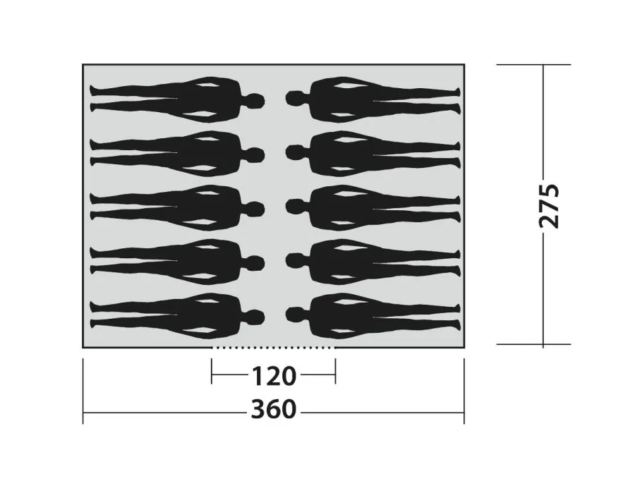 Large groups can sleep down both sides of the central pole whilst smaller parties can use one side as living space. Mesh behind the large, toggle back door, rear ventilation and full length covered side vents ensure campers can enjoy a comfortable airflow.