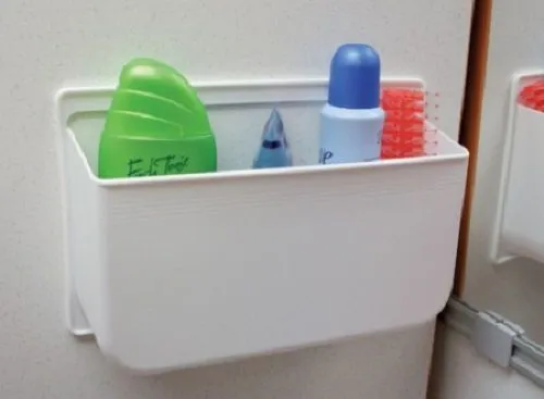 Can be fitted to walls or doors to increase storage space – ideal for bathroom accessories.