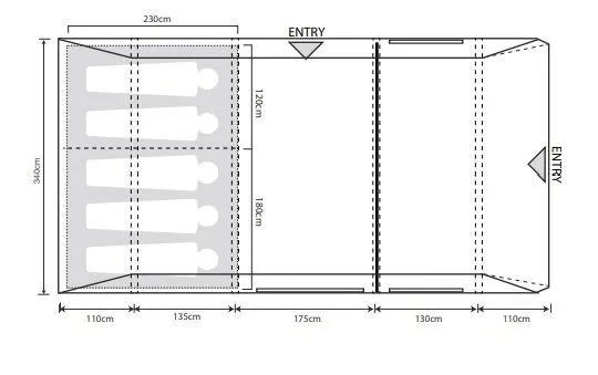 Having received the critically acclaimed Best Compact Family Tent award from Camping Magazine in 2019, the lightweight five berth Airedale 5.0S inflatable small family tunnel tent was always destined to become a firm family favourite and remains a key model in the Airedale range, specially designed to accommodate mid-sized camping groups seeking a base for memorable family camping adventures, or festival use. This high-spec family tent is the quintessential design for smaller families or couples craving a wealth of space, features, flexibility and protection against the elements, without a dramatic increase in pack size, weight or price. Ventilation and airflow are of key consideration in all of our family tents, which is why we have introduced a New double-width Patio style side door with a zip-back Phoenix Mesh ventilation fly screen panel, helping to consistently maintain a comfortable internal temperature whilst keeping bugs out. Now with the option to add an attractive zip-on Sun Canopy, the Airedale 5.0S is a fantastic, high-quality tent for couples and small families.