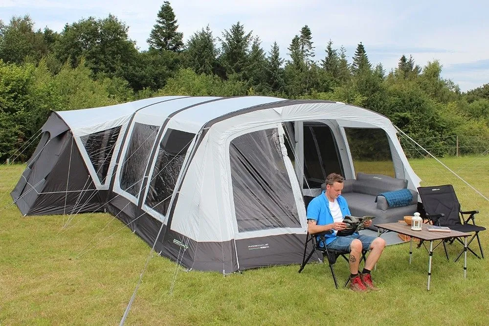 Upgraded for 2023 is the multi-award winning Airedale tent range, offering more value than ever before. This Premium Seven + Four berth Airedale 7.0SE inflatable family tent has been updated further for the 2023 season, building on the success of the critically acclaimed and exclusive multi-functional double-side annexe (Registered Design).