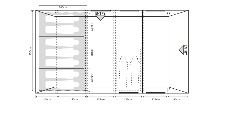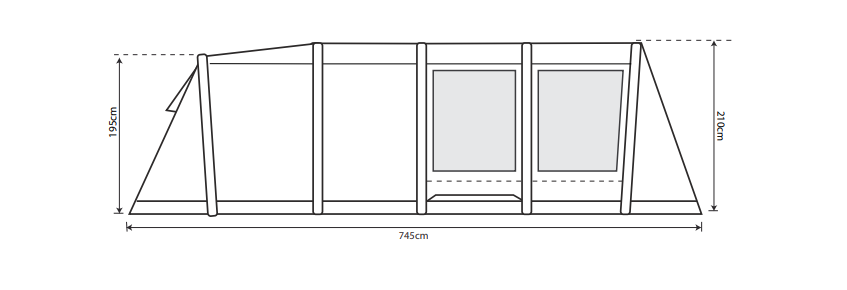 The breathable Seven berth inner tent included can be clipped in to provide a luxurious sleeping area, designed to accommodate up to seven average-sized adults; This is created using our darkened ‘Twilight’ fabric, in order to cut down on exterior light and help you attain a deep, cosy and uninterrupted night’s sleep. This model utilises our bedroom ventilation system to maintain a comfortable sleeping environment by optimising airflow, whilst helping combat condensation and internal humidity.