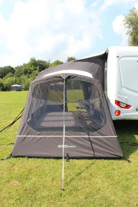 The Eclipse Pro 380 L has plenty of ventilation, with toughened zip-back breathable mesh panels built into both side doors, letting in plenty of air whilst keeping out flying bugs. A full zip-in mesh accessory door is also available for both side doors, as well as the central front panel – perfect for warm climates, another great addition is the optional Conservatory Annex which can be zipped to either side of the awning creating a large sleeping area, or a windowed conservatory/storage space.