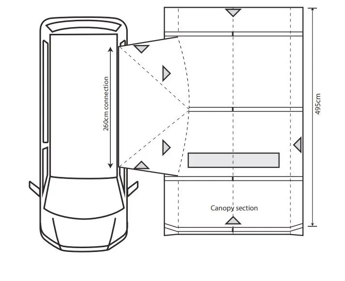 The addition of twin piping (6mm x 4mm) ensures compatibility across the vast majority of awing rail connections. Outdoor Revolution has implemented Phoenix Mesh fly screen panels in the side door to optimise airflow and keep insects at bay; an assisted healing smart material with the structurally incorporated ability to repair snag damage, typically caused by consistent usage. Manipulated, the mesh will then return to its original form. The integral front porch creates a convenient canopy area, where you can relax outdoors, while sheltered from the elements.