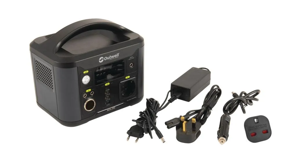 You’ll enjoy reliable portable power at your fingertips with the Outwell Akira 300 Power Station which can be recharged on the road from your vehicle battery.