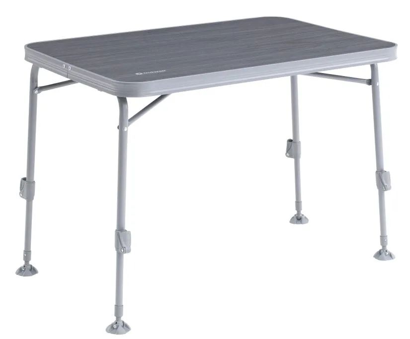 The Outwell Coledale Table features telescopic oversized aluminium legs for easy, secure height adjustment and flat feet for load-bearing support.