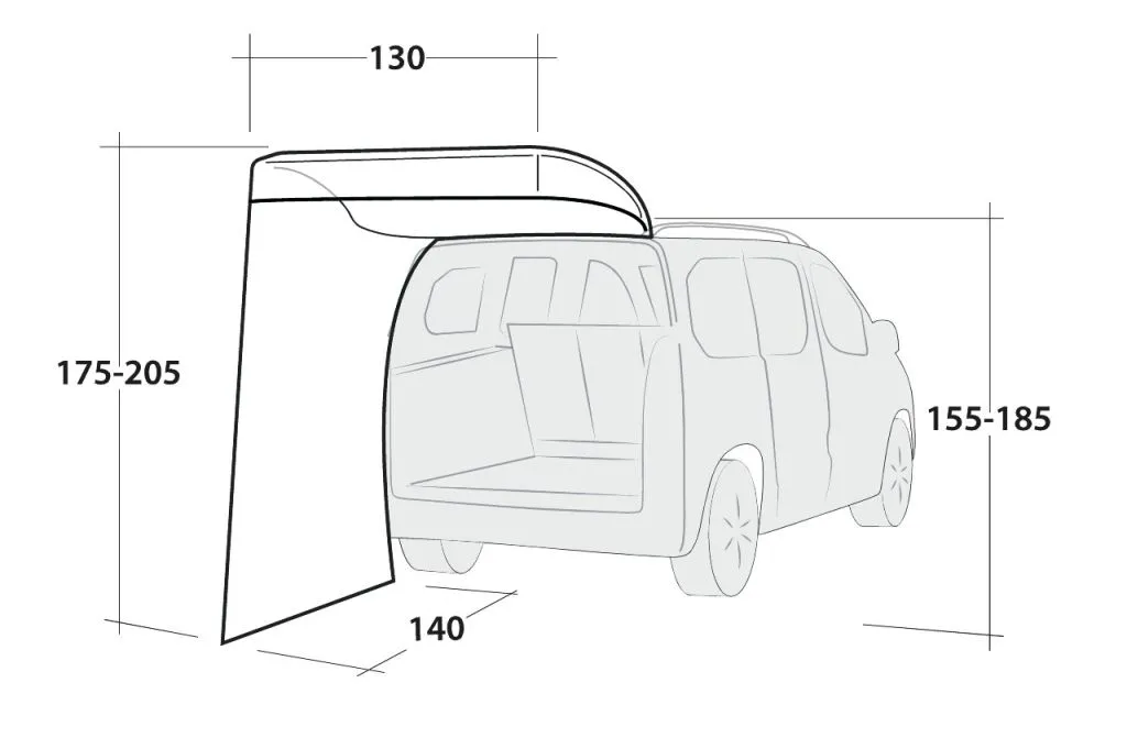Driveaway Awnings – Pitching Tip – Positioning the awning further towards the vehicle’s rear will mean it’s less likely that your sliding door will make contact with the side of the tunnel area. Be aware you may need to pull the side of the tunnel area away from the van to open the sliding door fully.