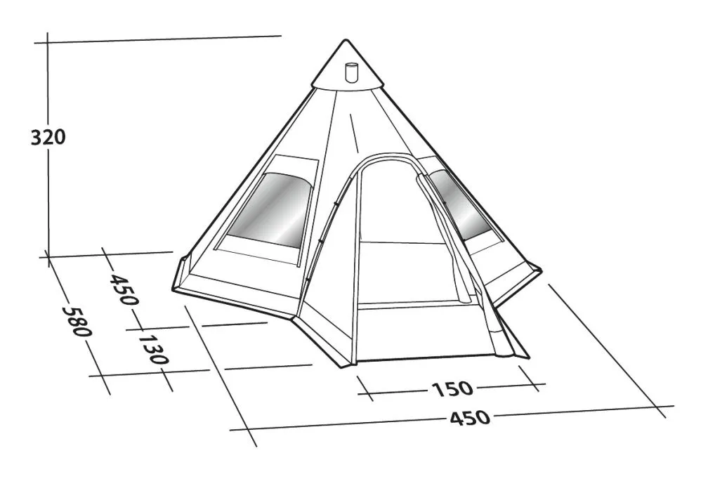 The Robens Kiowa tipi sleeps up to ten people and provides a large living space and front porch.