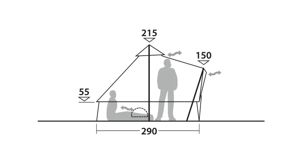 The vertical door makes for easy access – especially in bad weather − and the groundsheet features a zip to the centre alloy pole, enabling it to be rolled away at the door to create a safe area for an optional stove and a place for muddy boots.