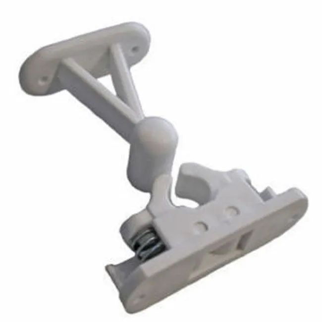 Standard caravan door retainer with sprung release in the white plasticised finish.
