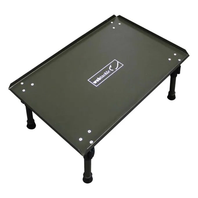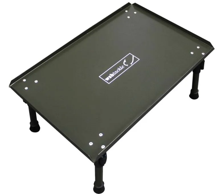 A WSB bivvy table with adjustable legs and a quick locking system with gripper feet.