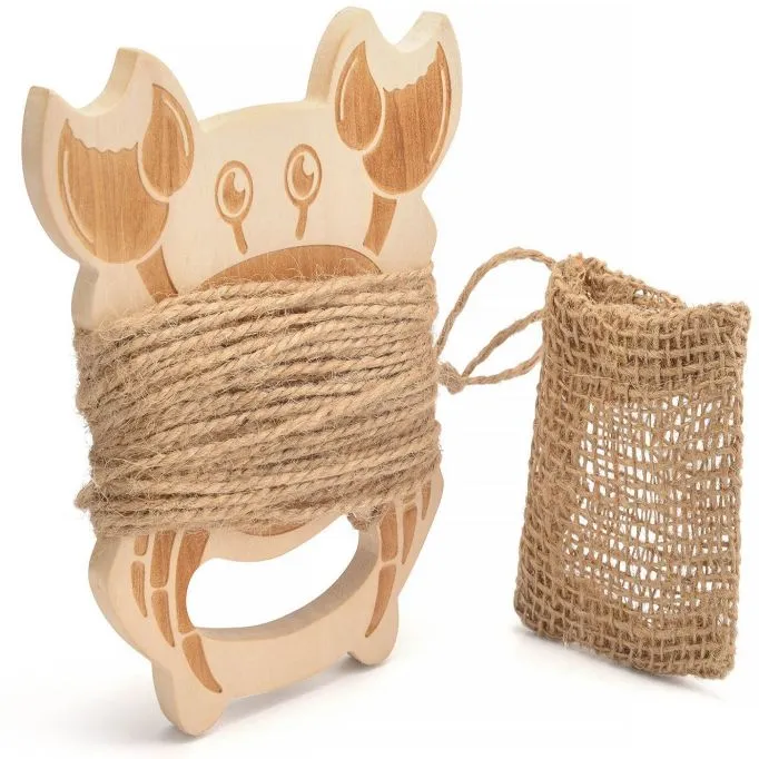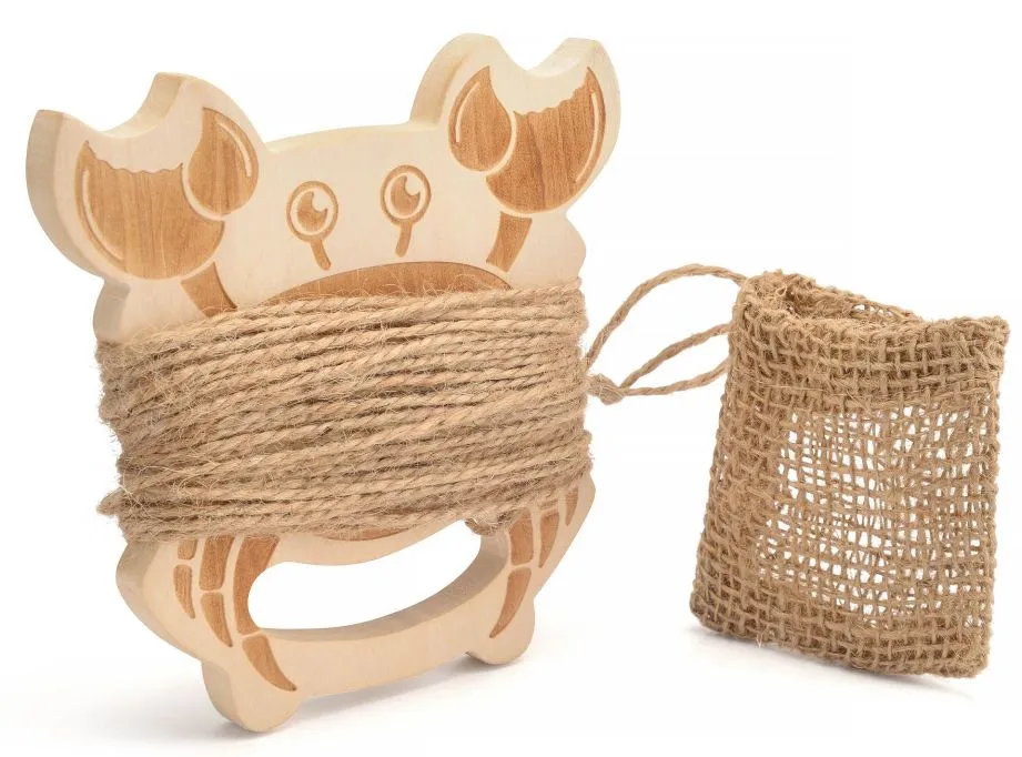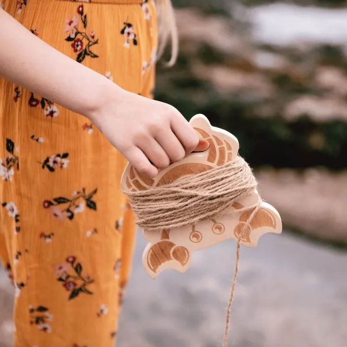 An eco-friendly crab line by Yello with a biodegradable hessian-style bait bag. The crab-shaped wooden frame is perfect for wrapping the 10-metre-long cord around.